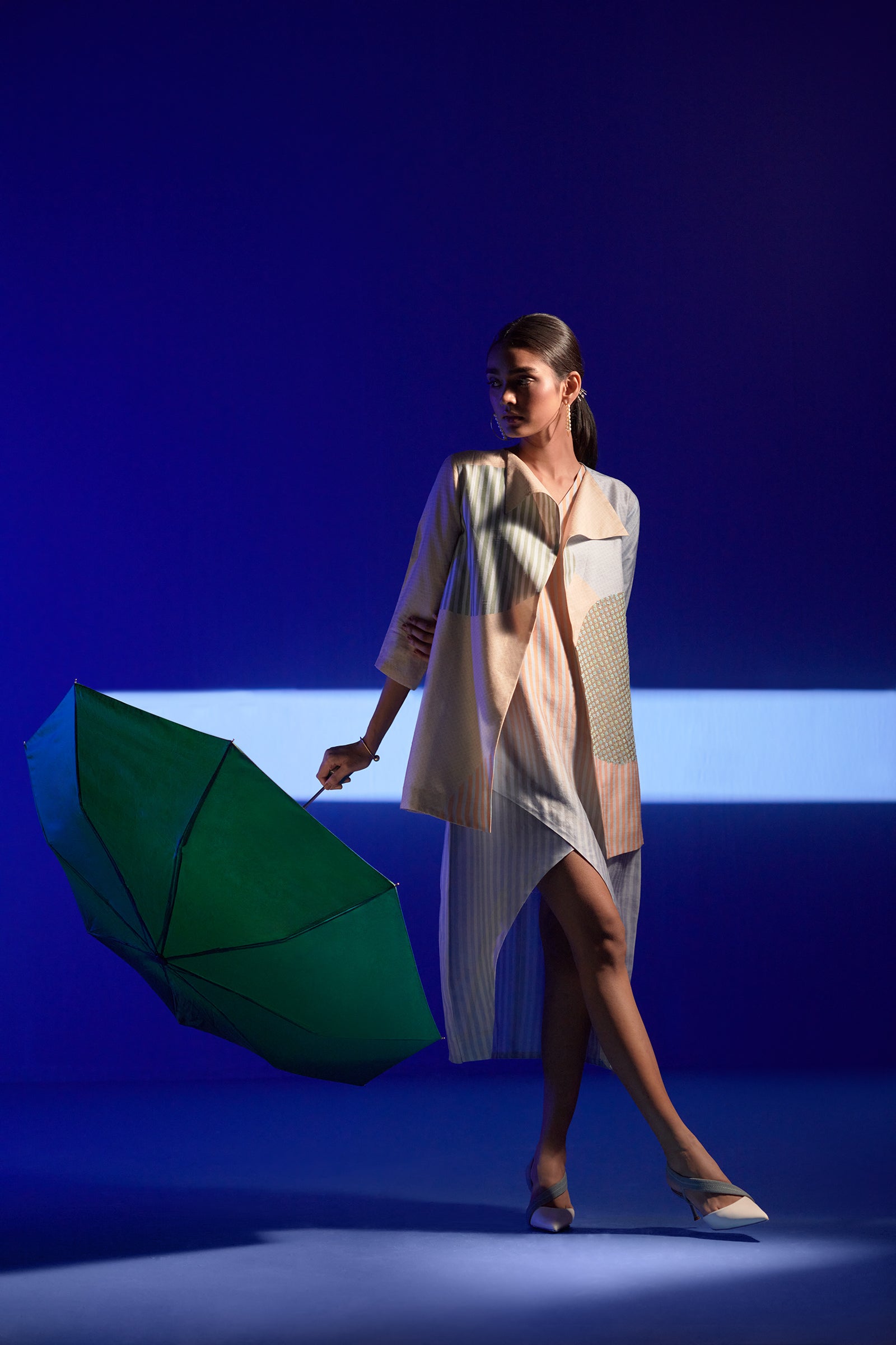 Symmetric vogue tulip-cut dress with dupion silk crop jacket to add an extra element to the design.