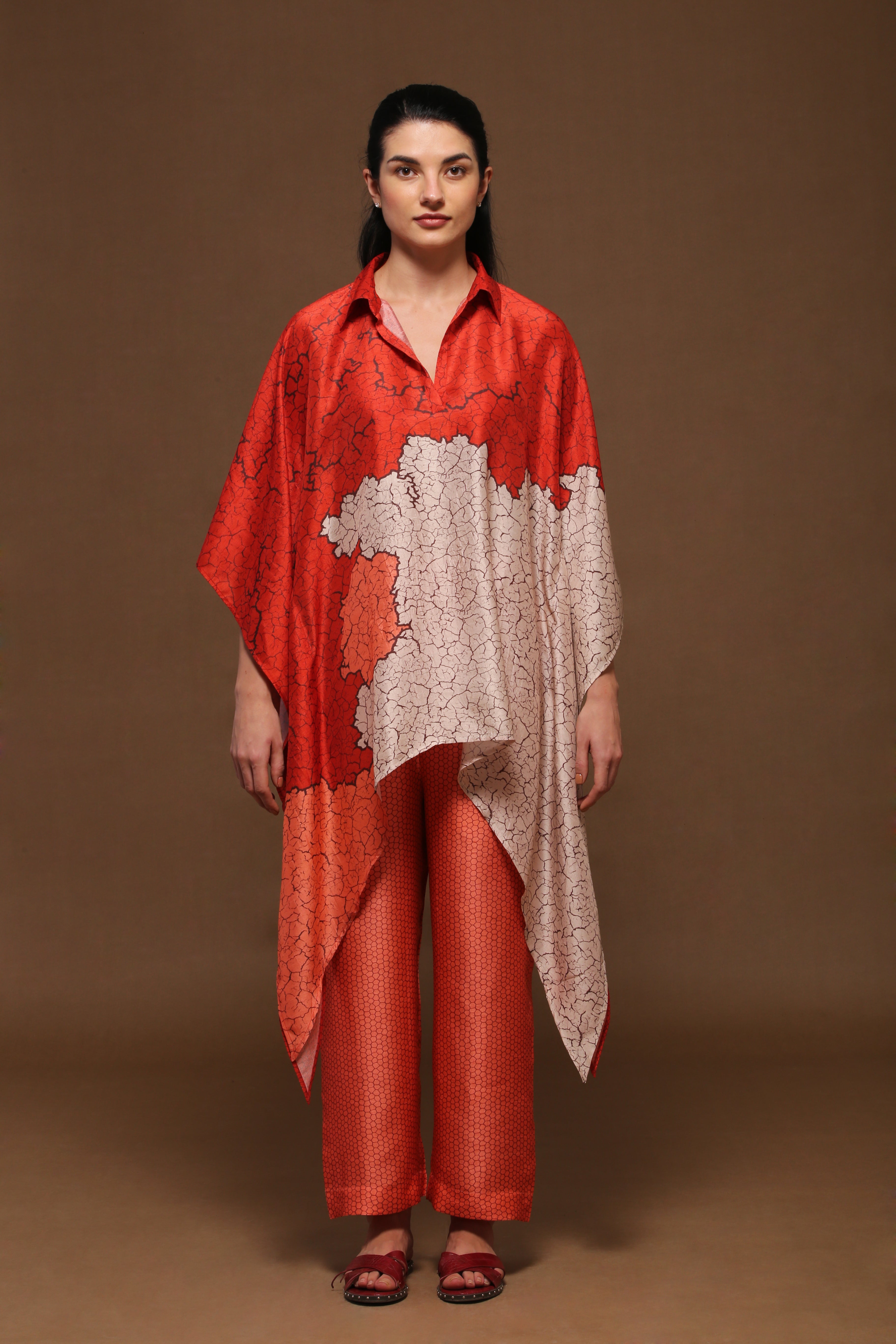 A collar detail Kaftaan Tunic with Parallel Pants crafted on a avant -garde textile print.